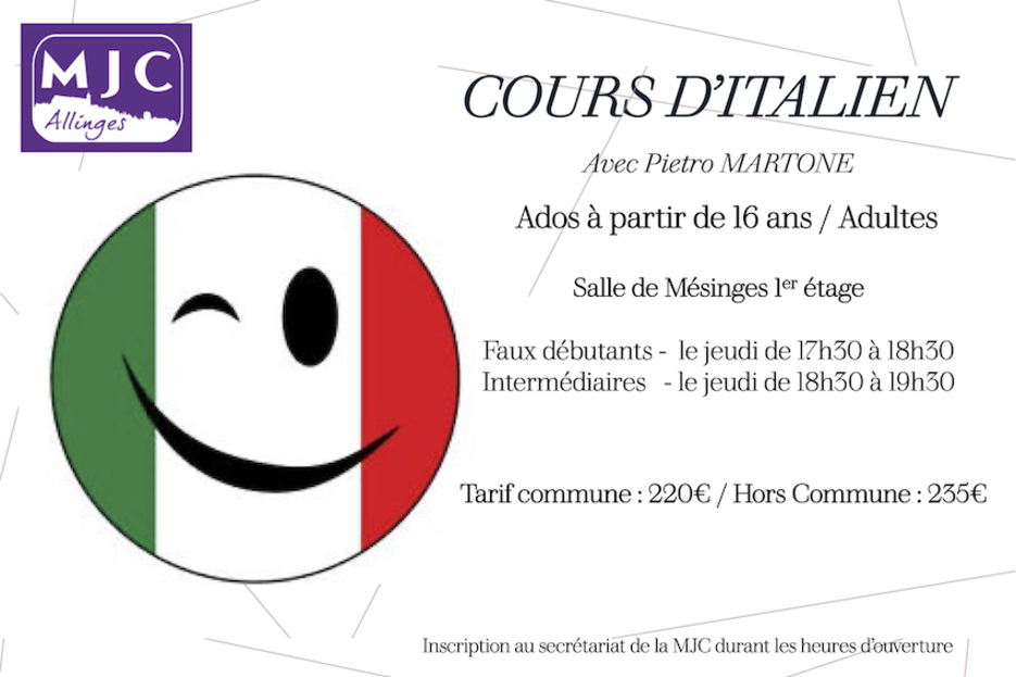 Apprendre l'italien du quotidien dans une ambiance ludique et conviviale à votre rythme. Mises en situations réelles pour pouvoir découvrir l'talien à travers sa culture, ses coutumes et ses traditions.
